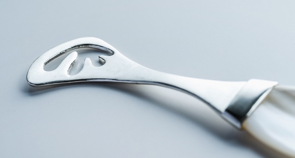柄部分のデザインは福岡在住のシルバーアクセサリー作家・Fonteskeyの末野美由紀(Miyuki Sueno)氏によるもの。小さな真珠をあしらった華奢な女性らしい流線型のデザインと、海面の動きをモチーフに、水中で動き回るサメのヒレをイメージした透かし模様を入れたデザインの2種類をご用意いたしました。