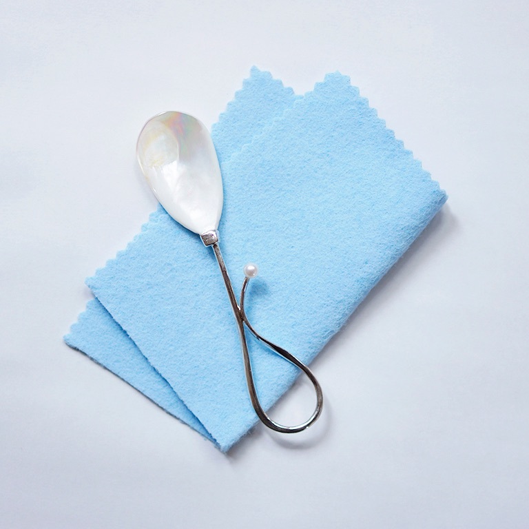 時々、添付の銀用のクロスで磨いて頂ければ美しさを保つ事が出来ます。